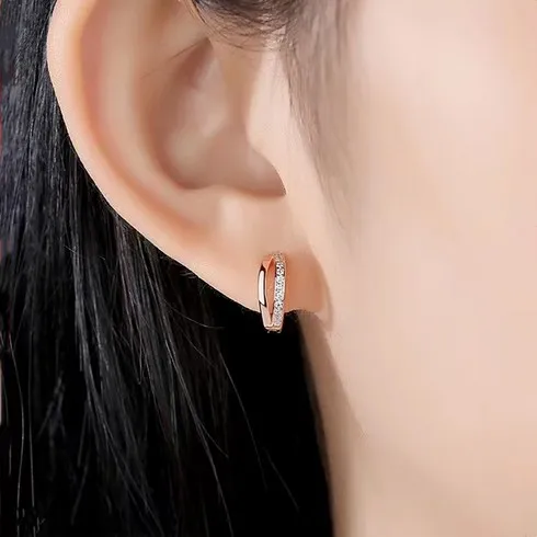 르누벨 14K 귀걸이 큐빅 라운드 링 원터치 이어링
