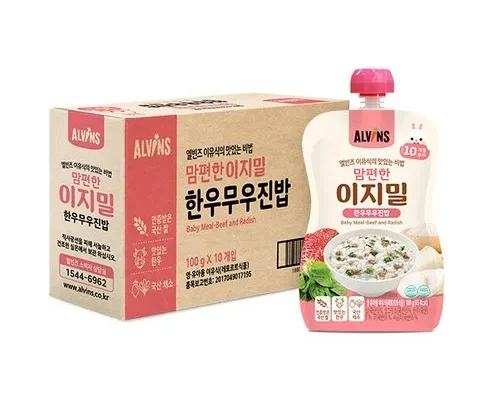 엘빈즈 이지밀 맘편한 파우치 이유식 10개월 이상, 10개, 한우무우진밥