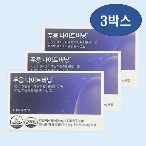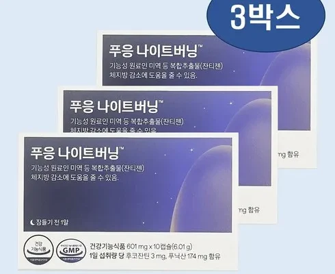 푸응나이트버닝 나이트버닝 잔티젠 다이어트 수면 보조제 기초대사량 체지방 10캡슐 3박스, 3개