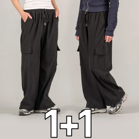 여성용 면스판 스트링 카고 팬츠 1+1