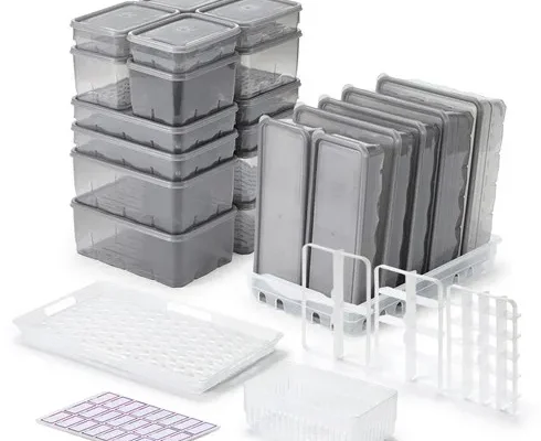 땡스소윤 냉동실 전용 밀폐용기 29p 세트 투명그레이, 1세트, 밀폐용기 22p + 채반 2종 + 칸막이 3종 + 트레이 + 견출지 4p