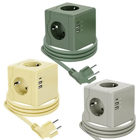 에코너 큐브 디자인 멀티탭 리드선 멀티콘센트 USB C타입, 1개, 녹색, 1.8m