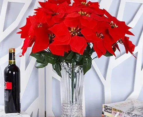 포인세티아 조화 인테리어 조화 크리스마스 꽃 장식 트리 화분 꽃다발 카페 소품 겨울 벨벳 레드 빨간, 포인세티아 5부쉬
