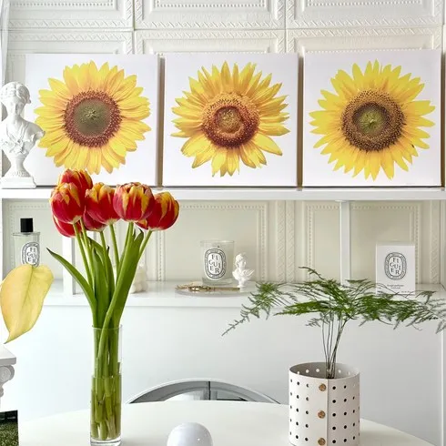 더하이어 거실그림 돈들어오는그림 인테리어그림 해바라기 액자 포스터 풍수 3개세트