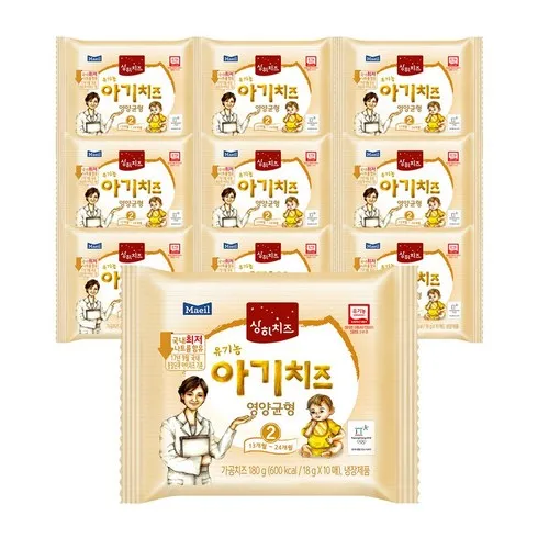 매일유업 [매일] 상하치즈 100매 유기농 첫치즈 아기치즈 어린이치즈, 아기치즈 2단계, 180g, 10개