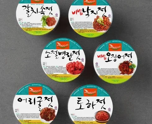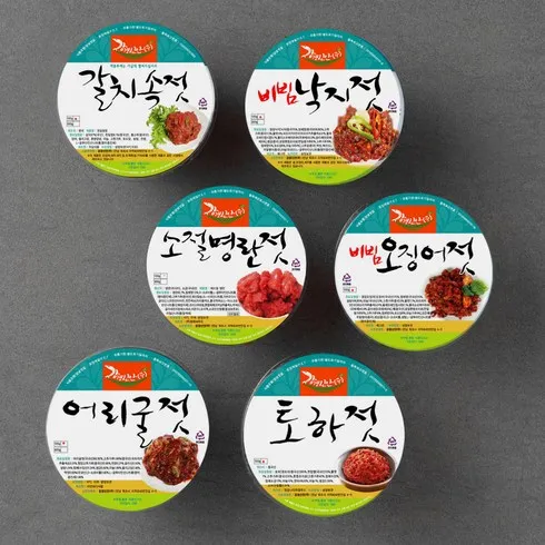 강경신안상회 반찬을부탁해 캠핑용 오징어젓 100g + 비빔낙지젓 100g + 소절명란젓 100g + 갈치속젓 100g + 명태회무침 100g + 양념깻잎 100g 세트 (냉장), 1세트