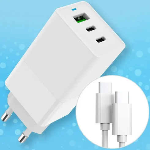 홈플래닛 GaN PD PPS 65W 3포트 초고속 멀티충전기 + 60W CtoC 1.5m 케이블 세트, 1세트