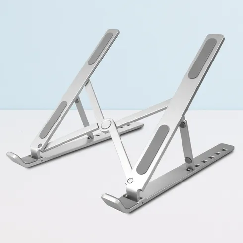 홈플래닛 접이식 휴대용 알루미늄 노트북 거치대 (휴대용 파우치 포함), 메탈릭 그레이