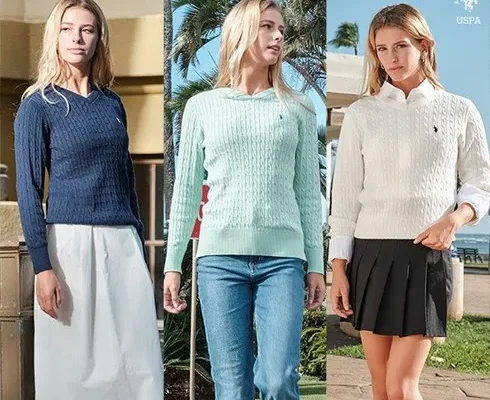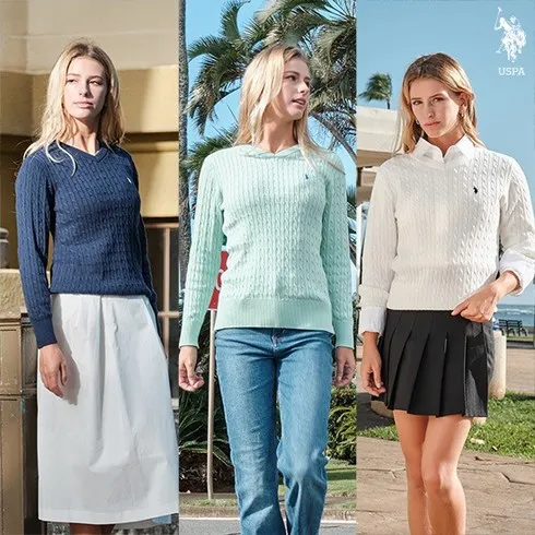 [24SS최신상][U.S. POLO ASSN.] USPA 여성 코튼100 케이블 라운드니트 3종 (HUPS249201)